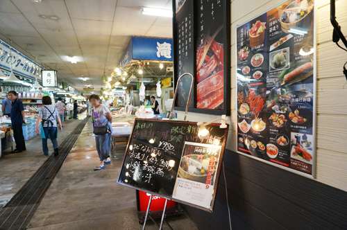 こんな買い物が楽しめる市場ですが、市場と言えば食堂です。境港水産物直売センターの中にも今年の4月にオープンした「海陽亭」があります。 早速入っていました。
