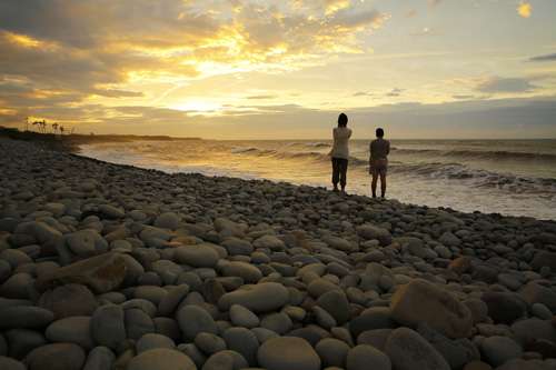 琴浦町の海辺。地元の人に再び命を吹き込まれた浜があります。 「鳴り石の浜」。 打ち寄せる波で丸い石どうしが當たり、カラコロと何とも言えない癒しの音色を屆けてくれるこの場所、実は夕日の名所としても有名。 この日もたくさんの人が訪れ、臺風一過で真っ赤に焼けた空を楽しんでいましたね。