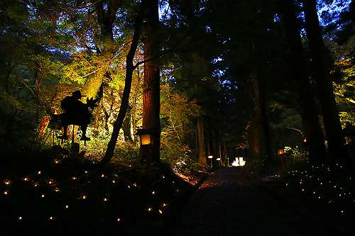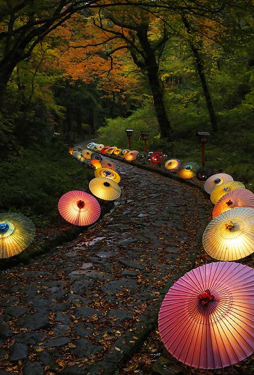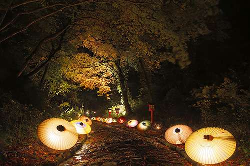 今年、初めての開催となった「秋華の燈り 和傘ライトアップ」。 両日とも雨の中での開催となりましたが、雨に濡れた參道が光ることでさらに神秘的に。 やっぱり傘には雨が似合うのですね。 夏のお盆に開催された時(shí)よりもちょっと和風(fēng)に感じられるのは、ちょうどピークを迎える紅葉のせいでしょうか。紅葉の下にともるやさしい和傘の競演。日本人でよかったと思える瞬間がここにありました。