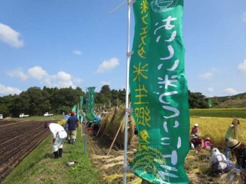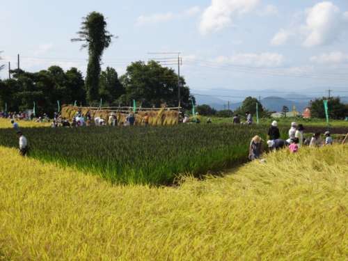 伯耆町のガーデンプレスの下、伯耆町丸山の水田(八郷地區?大原千町)で 6月に田植えをした苗のがいよいよ収穫する秋が訪れました。 毎年、農業?お米作りへの理解を深め、消費者と生産者の交流を促進するため「米フェスタ?おいしい米づくりにトライ!」が開催され多くの人で賑わいました。(同実行委員會、JA鳥取中央會、新日本海新聞社主催)