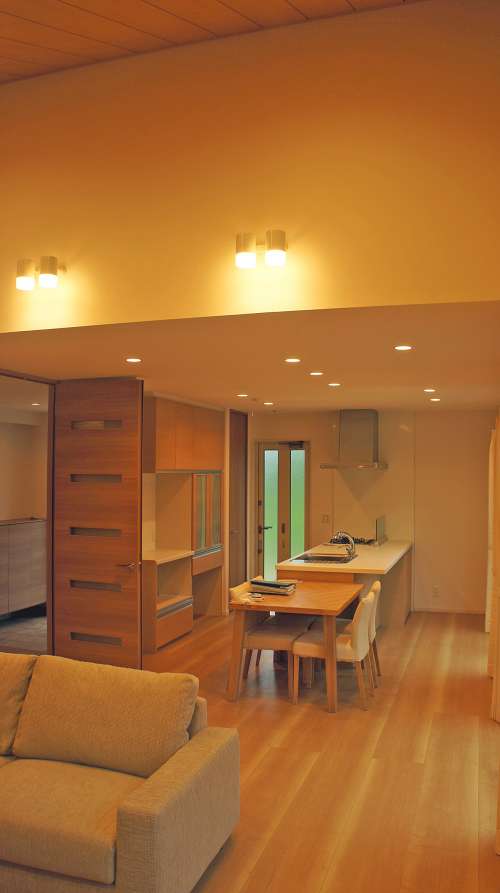 森林住宅ならではのキッチンやダイニングテーブルの配置に
