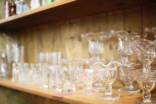 グラスや器、シルバーの食器など、アンティークの小物も充実しています