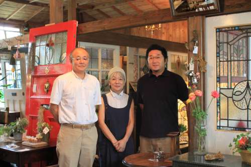 今年4月、阿蘇市の舊?洋裁女學校跡にオープンした、アンティーク家具とステンドグラスの店です