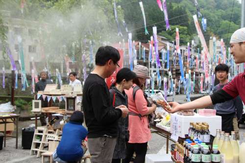 阿蘇郡小國町の杖立溫泉では、隔月第1日曜の朝7〜10時に地元自慢の物産を販売する朝市「みちくさ市」を開催しています