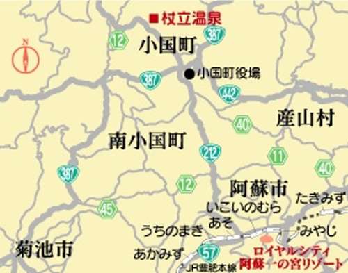 アクセス/ロイヤルシティ阿蘇一の宮リゾートから約38km、車で約50分