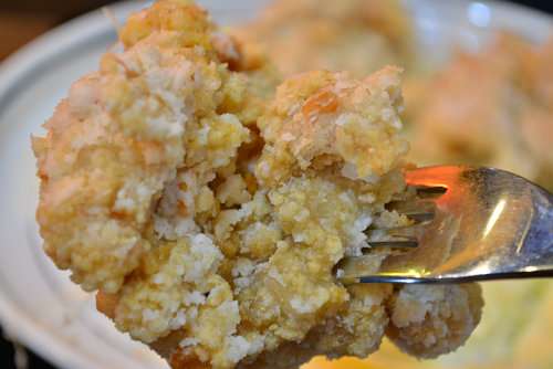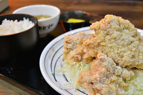 さっくりとした歯ざわりの良い衣の中には、柔らかくて肉汁たっぷりの鶏肉が。さっぱりとした味付けで、飽きずに食べられます。