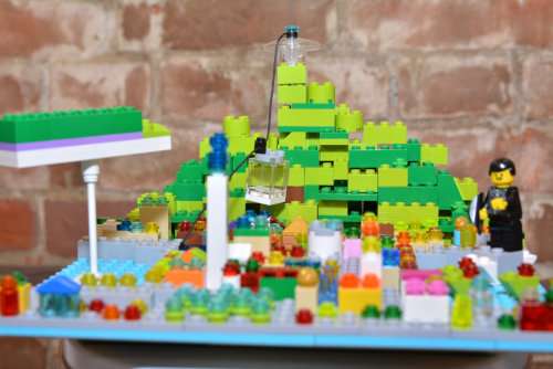 こちらは、ブロックで函館山や街並みを表現した作品。函館山ロープウェイのゴンドラや、函館灣を訪れたペリーらしき人物もあって、なかなか凝っています。