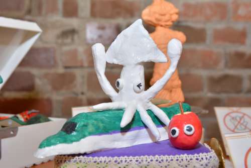 作品の素材などは自由のようで、紙粘土やフェルト、厚紙などさまざま。どれも一目見て函館を感じさせる作品ばかりで、通りかかった観光客の目を楽しませていました。