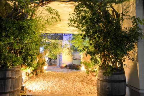 天井に木の影を映し出すなど、木と照明を用いた裝飾にこだわりを見せる「森のビアガーデン」。落ち著いた雰囲気の中で幅広いメニューが楽しめると評判です。8月20日まで。