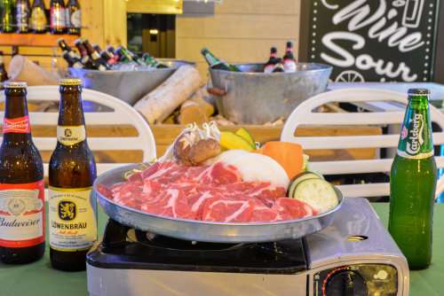 北海道のビアガーデンでは一般的なジンギスカンが食べられるほか、焼肉店の肉料理やグルメコート內各店舗のメニューも注文することができるので、メニューはかなり豊富。