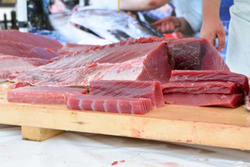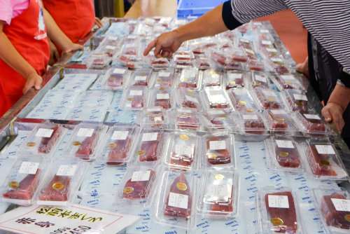 食品衛生の関係で、解體ショーに使ったマグロは販売されませんが、代わりにあらかじめ切り分けられた生本マグロが販売されます。