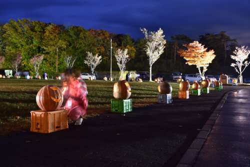 10月21日から23日まで開催された「大沼ハロウィンナイト」に合わせた企畫で、大沼公園に入ってすぐの広場一帯に約300個のカボチャランタンが並びました。