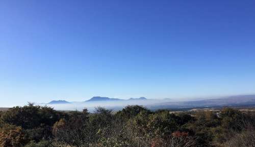 11月の晴れた土曜日、大分県日出(ひじ)町にある大神ファームに家內と行った。翌日日曜日に大分市で所用があるため大分市で一泊する小旅行となった。 ~往路のやまなみハイウェイで大分県に入ってすぐの展望所から阿蘇五岳の涅槃を望む~