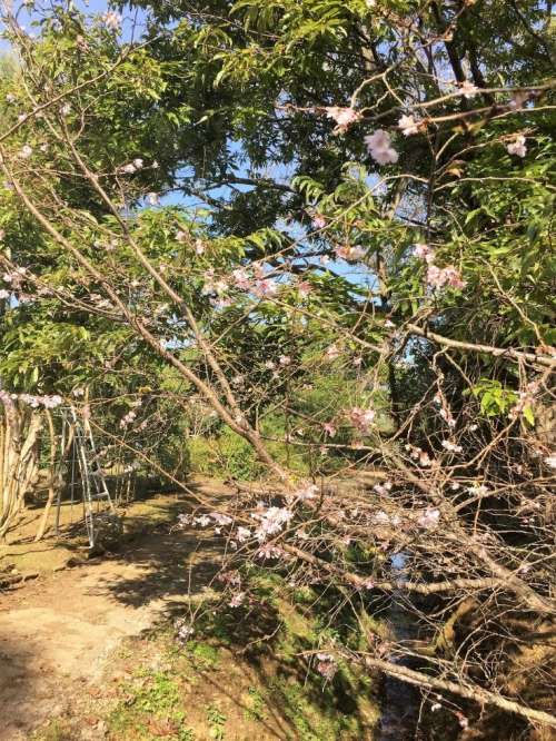 とても暖かい日なので、晝食は四季咲きのバラをながめながら外のテーブルでのランチ