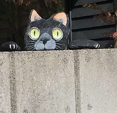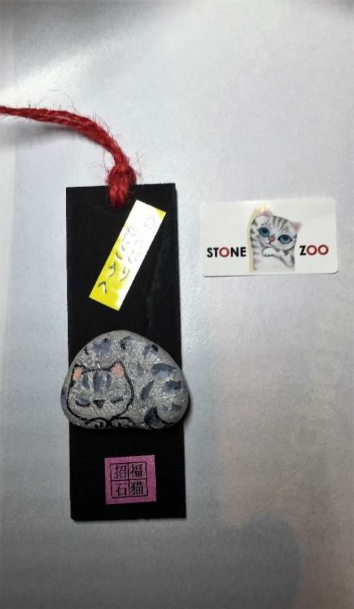 石ころたちの動物園の入り口で我々を迎えてくれる「黒貓」チャンも、左右の両手と顔の3つの石からなるストーンペインティングの作品です!