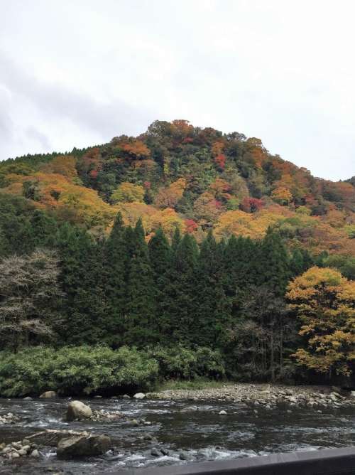 翌日大分旅行からの帰路、九酔渓に立ち寄り、紅葉を楽しんだ。 t値寄ったとは聞こえがよいが、なにを隠そう、大分からの帰り道、やまなみハイウェイに乗ったはずが、途中から道が外れており、やむなく途中から40號(hào)線に入ってリカバリーを図ったところ偶然にも九酔渓に出くわしたというのが実情だ。 九酔渓は、玖珠川流域の両岸約2キロにわたって斷崖絶壁が直立にそそり立つ、ヘアピンカーブの連続する渓谷で、別名「十三曲がり」と呼ばれる新緑と紅葉の名所である。