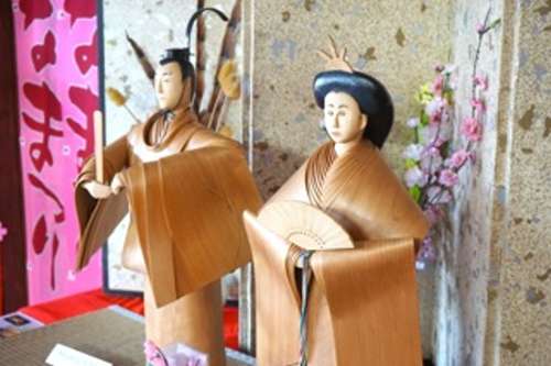 飾られるひな飾りは地域に代々伝わるものが主。 中には江戸、明治、昭和、平成の4時代のひな飾りが並ぶ店もあり、 人形の顔立ちや表情、女雛髪の結い方や髪飾り、 官女の衣裝など時代ごとの特徴を見比べるのも一興 また、地元の幼稚園児や小學生の工作品、豆粒のように小さなクラフト作品など、 施設によってひな人形のバリエーションも豊か。 球郡球磨村の観光案內所には 伝統工蕓「一勝寺曲げ」で作られた木製のひな人形が飾られ、 地域の歴史と文化にも觸れることができます 球磨郡多良木町では、昭和初期の石倉に小さな人形が連なる 「つるしびな」やひな飾りを展示 多良木町役場交流館 石倉 ☎︎0966-42-1257 板木を煮て曲げる「一勝地曲げ」で作られたひな人形 人吉球磨は、ひなまつり/2017年2月撮影 ロイヤルシティ阿蘇一の宮リゾートから約122km、車で約2時間