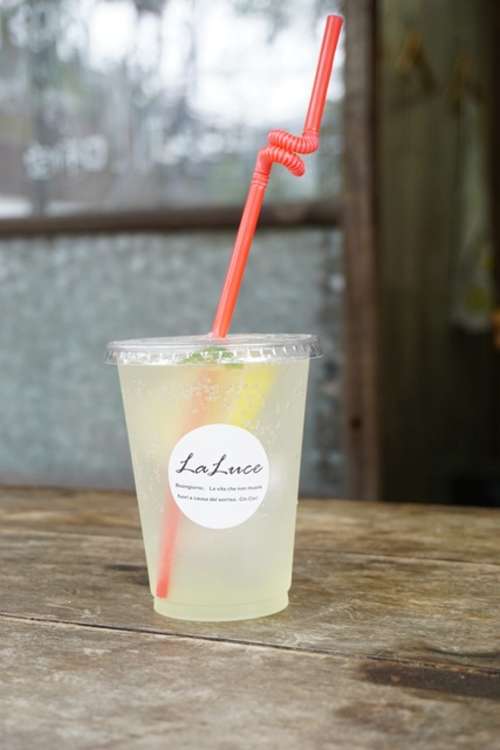 ヨーロッパ風(fēng)のドリンクスタンドが目を惹く『イタリア食堂 La luce(ラ?ルーチェ)』に立ち寄ってみました。 ドリンクメニューも充実していて、自家製のシロップを炭酸で割った「オレンジエード」(300円)や、エスプレッソやホイップクリームが層になった「ティラミスコーヒー」(450円)などがあります。テイクアウトしたのはオーナーの藤﨑雅也さんおすすめのリモナータ(レモネード)。自家製のレモンシロップの皮のほろ苦さが生きる、〝大人のジュース?です。藤﨑さんは「肌寒い日は、シロップをお湯で割ったホットレモネードがおすすめです」と教えてくれました。 La luceは2015年にオープン。店內(nèi)では地元産を中心にした新鮮な食材で作るイタリアの家庭料理を食べることができます