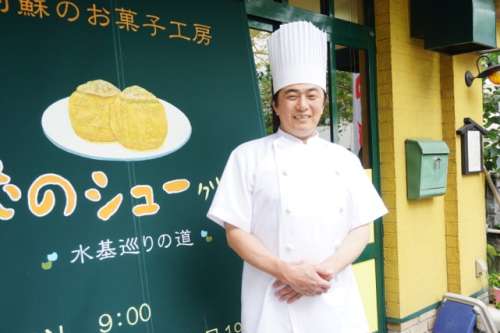 オーナーシェフの田野雅文さんは、「たのシューの味の決め手となっているのは清冽な湧水」と言います。ふんわりとした薄い皮の中には、純生クリームで作るなめらかな舌觸りのクリームがたっぷり…。トッピングのアーモンドダイスが香ばしく、食べるとコクのある甘みが口いっぱいに広がりますが、後味はすっきりしています。サイズが小ぶりなので、何個(gè)でも食べられそうです。 田野さんは「阿蘇の銘菓を作りたい」という熱意を抱き、東京や熊本で修行した経験があります