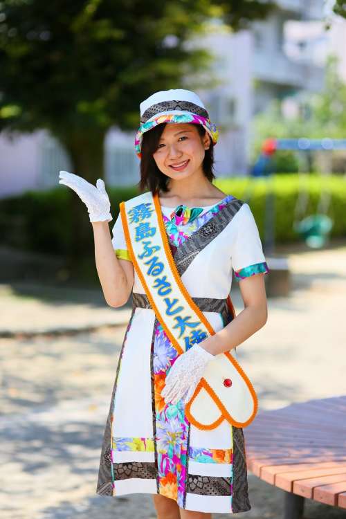 霧島國分夏祭りにて引継式が行われ、新しい制服を著用し、霧島ふるさと大使のタスキを受け継ぎました。地元企業(yè)であるセイナさつきブライダルさんがプロデュースし、明治維新150周年や大河ドラマ放映に向けて鹿児島全體をPRするために、薩摩藩の財(cái)政に寄與した貴重な大島紬を隨所にあしらった世界に一つだけの制服となりました。