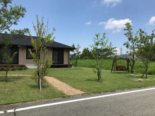 こちらは、體験宿泊棟としてお借りしています、G様邸。右端の影の所にブランコが移動してありますねぇ