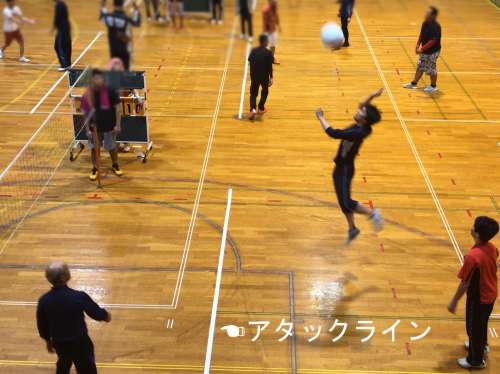 先程のルールの説明で、アタックはアタックラインより後ろであればできるそうなんですが、どこのチームもこれを決めるのは至難の業の様です