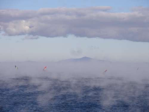 時には霧は沖合い數キロに達し、風速は長浜大橋付近において10m以上が観測されます。