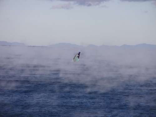 強風を利用してウィンドサーフィンを楽しんでいるではありませんか