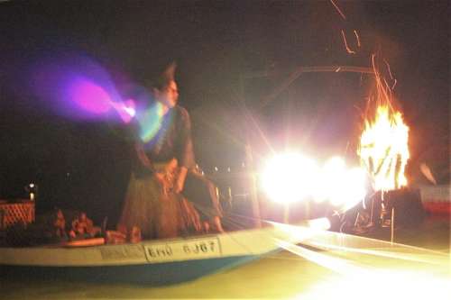 漁火を炊いた鵜飼い船の向こうに見えるのは