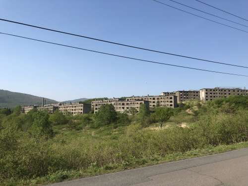 ると何やらマンション団地のような建物が數棟少し遠くに見えてきます。