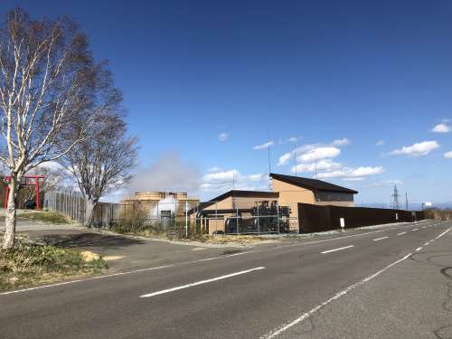 駐車場向かいには地?zé)岚k電所があり蒸気がモクモクとで続けてます