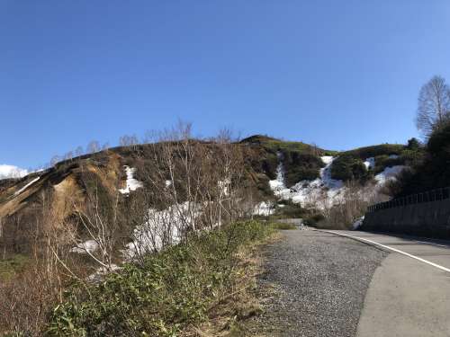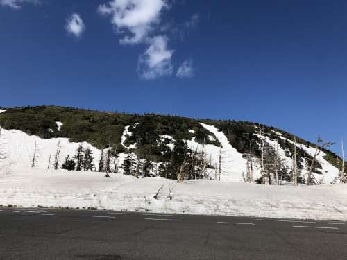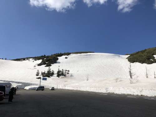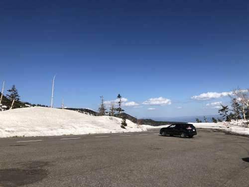 ここに車を停めて、徒歩で山頂を目指す方や、春スキーを楽しむ方などが