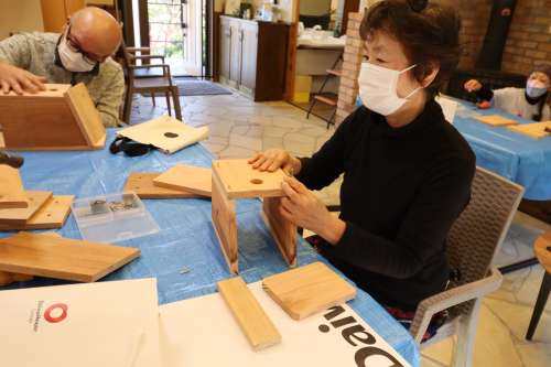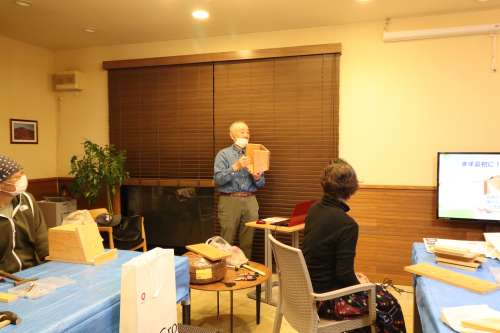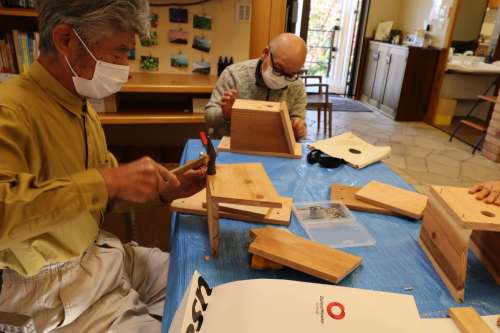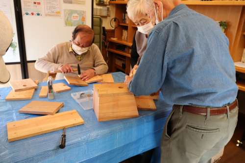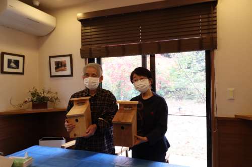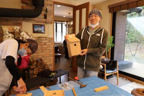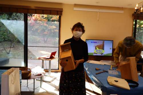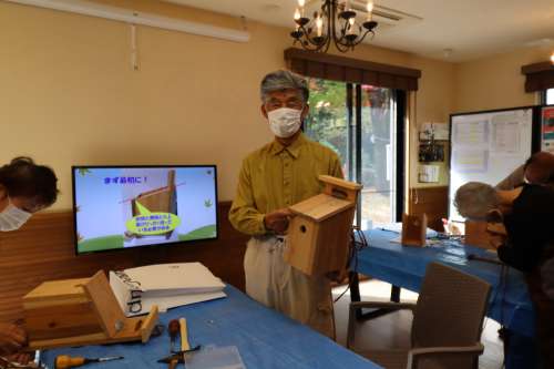 「鳥の巣箱づくり」イベント開催しました 伐採した樹木の再利用、資源循環(huán)の一環(huán)です アドバイザーは1街區(qū) 石原 健一様です まずは巣箱づくりの意義から説明です 今回はあらかじめ石原様がカッティングをして 參加人數(shù)分のキットにしていただきました よく見ると、釘の位置まで指定してあります (感動です) その上、組立ての手順を丁寧に説明されました さあ、作業(yè)が始まりました 一斉に、トントントントン木工職人さんに変身 石原さんもあっちこっちのテーブルに引っ張りだこ 一番乗りは2街區(qū)K様 さすがの腕前でした ぞくぞくと完成品ができあがります 2街區(qū)Y様 2街區(qū)U様 2街區(qū)T様 2街區(qū)M様 2街區(qū)Y様 1街區(qū)K様 皆様、おつかれさまでした キットになっているから割と簡単にできるのでは と思っていたのが、意外に大変で、完成した喜び が大きかったとの感想をお聞きしました 來年の春に鳥が巣を作りましたら、このブログで 様子を詳しくお知らせしたいと考えています 今回、石原様にはカッティングなど準(zhǔn)備に大変な ご負(fù)擔(dān)をいただき本當(dāng)にありがとうございました また、宜しくお願いします 撮影年月2022年11月 阿蘇一の宮リゾート內(nèi)