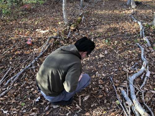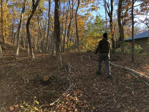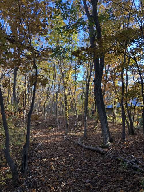 夕方についたのですが、日に照らされて秋色に染まった森の小徑も良い感じです