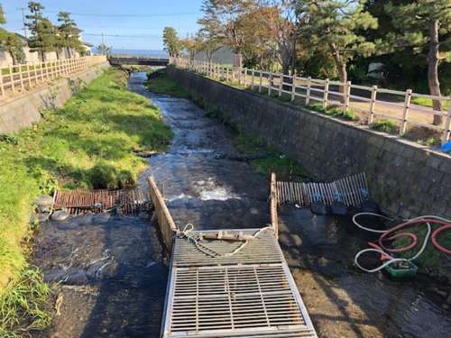 「サケの捕獲機」 ※寫真は全て2022年11月に鹿部川(鹿部リゾートより約6.1km)で撮影
