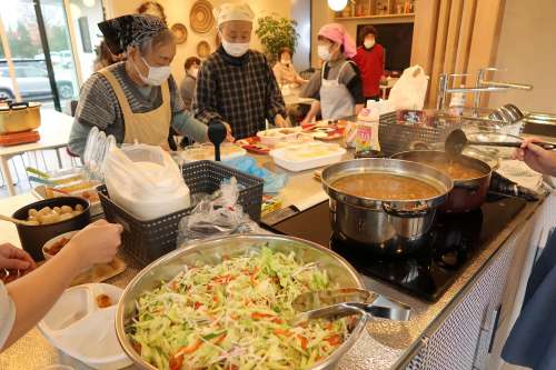 キッチンでは、8名のオーナー様でカレー作り