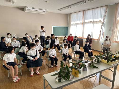 內容は、大久小學校の生徒のみなさんにココラン(ミニ胡蝶蘭)を育てていただきながら
