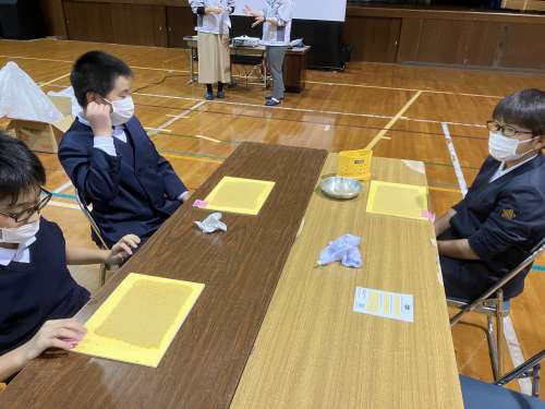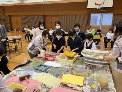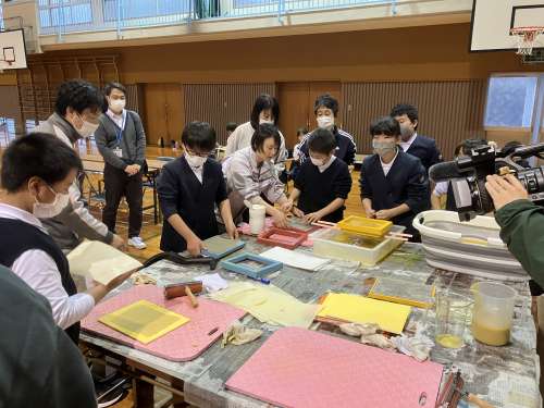 ほとんどの生徒が紙漉き體験が初めてのようでうまくできるか不安そうでした
