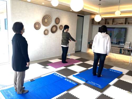 音楽に合わせて手足を動かしながら、知的課題を盛り込んだ運動プログラムです。