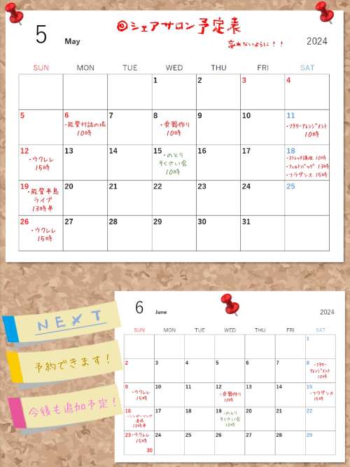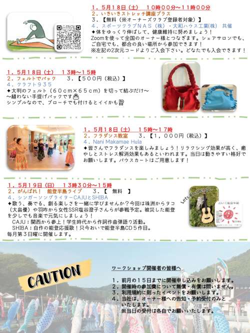 シェアサロン暮らす森テラス【5月ワークショップのご案內】
