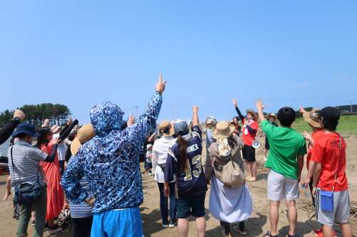最後に安部屋海岸の弁天島をバックに集合寫真を撮りました