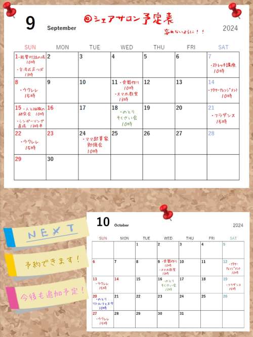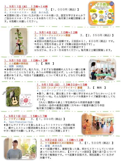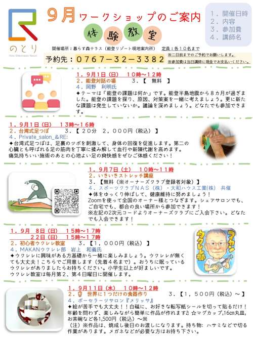 シェアサロン暮らす森テラス【9月ワークショップのご案內】
