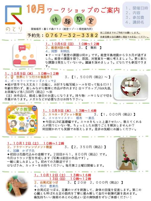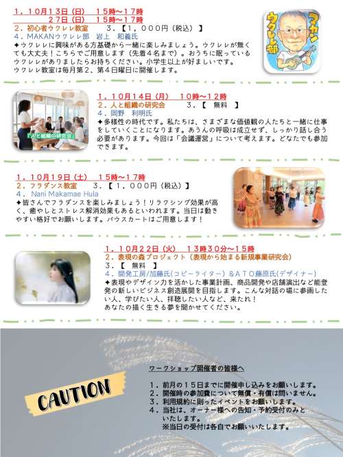 シェアサロン暮らす森テラス【10月ワークショップのご案內(nèi)】