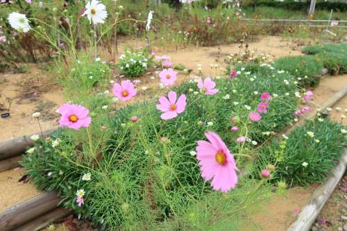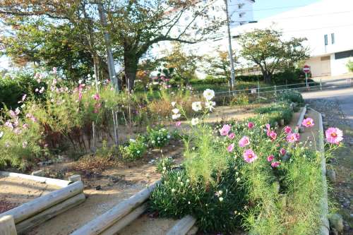 のとりガーデンのコスモスが爽やかな風に揺られ、秋を感じています