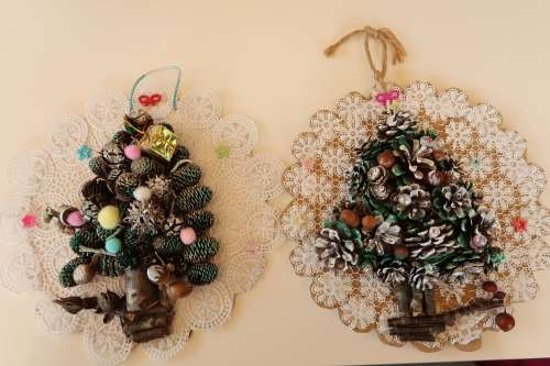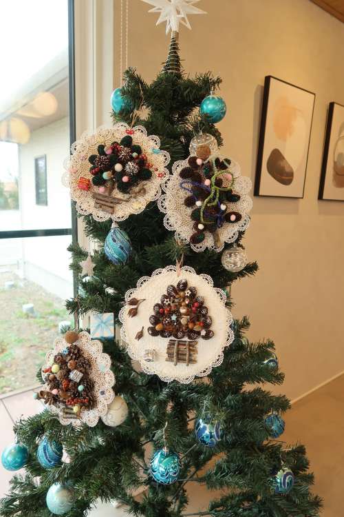成した作品をサロンのXmasツリーに飾ってみました🎄