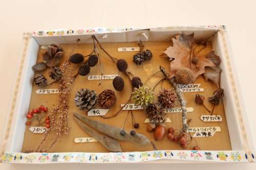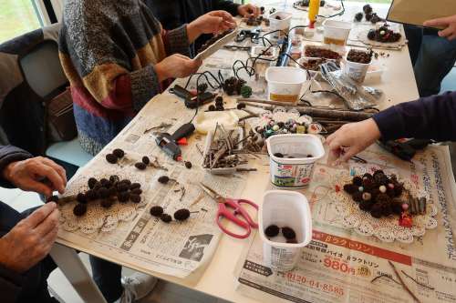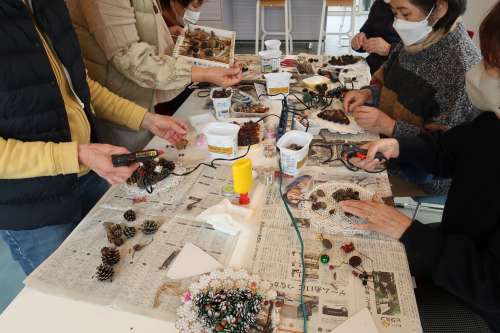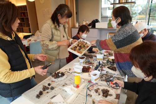 講師の先生に木の実の名前を聞きながら、制作していきます。