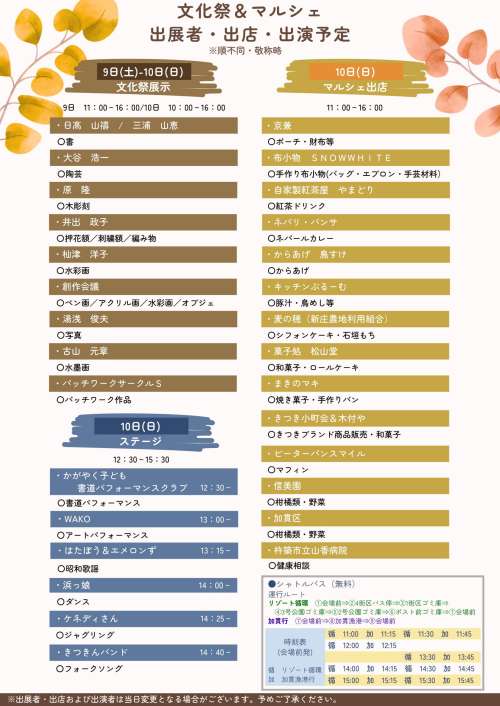 文化祭   9日 11:00から16:00