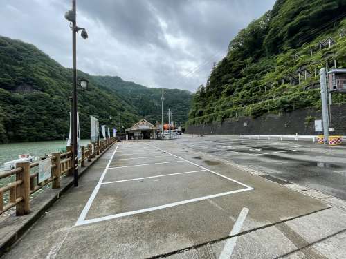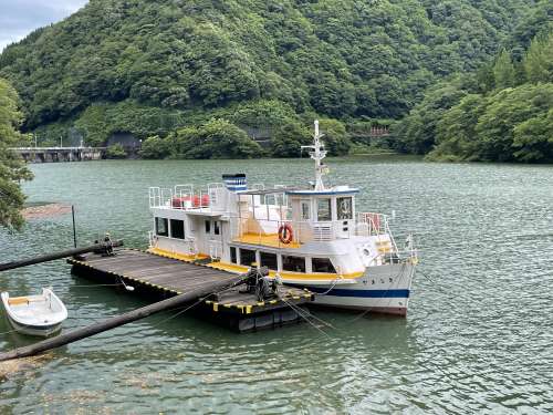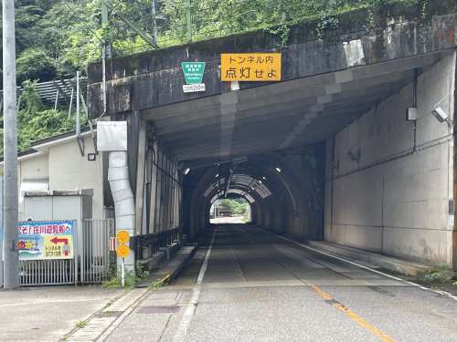 『トンネルを出てすぐ左側、ようこそ!莊川遊覧船へ』との