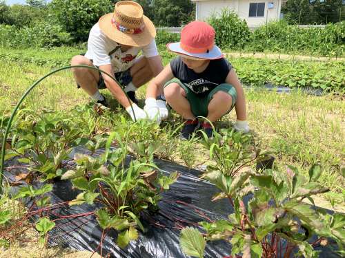 少し前になりますが、7月27日にいちごの苗づくりを行いました。