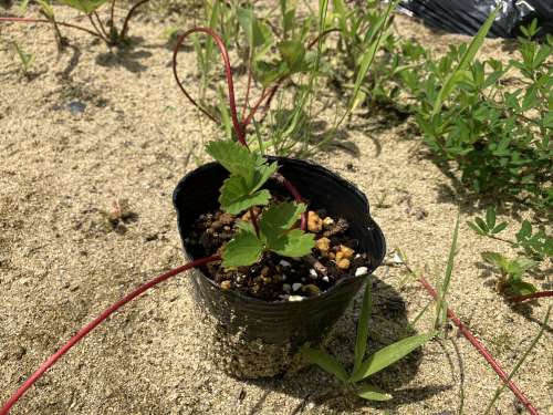 コツとしては、親の苗から伸びたランナーの2番目の葉をポットに挿していく事です